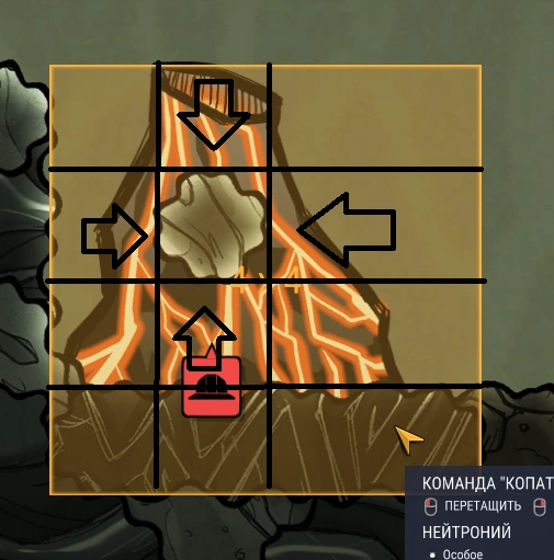 У каждого геологического образования существует активная клетка, по которой определяется возможность его работы. Если считать от крайнего левого блока нейтрония в основании, эта клетка находится на 2 клетки выше и 1 клетку правее — примерно в центре. Когда эта клетка заполнена природным блоком или жидкостью, геологическое образование считается Закопанным или Затопленным соответственно. В этих двух состояниях производство ресурсов невозможно. Остальные клетки можно освободить от природных блоков, оставив не раскопанной только эту — образование будет всё ещё закопано. Можно использовать данную особенность для обустройства пространства вокруг без риска обжечь дубликантов, не использующих экзокостюмы.